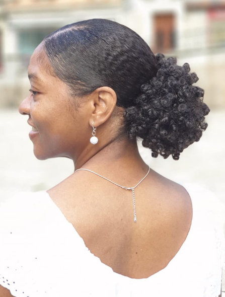 En este post no voy a entrar en detalle en lo que es un moño postizo para cabello afro rizado ya que he dedicado un post a ello y lo puedes leer en el siguiente enlace: https://estiloprotectorcabello.liudmilareyes.com/mono-postizo/